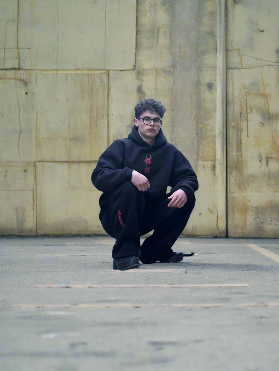 A bold silhouette built for movement and statement. The oversized fit delivers comfort with presence, while three evolving skulls across the top tell a story of transformation and defiance. Finished with a striking red Berserk emblem on the pants — a mark of raw individuality. Heavy, fearless, and limited. This isn’t just a tracksuit — it’s armor.